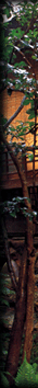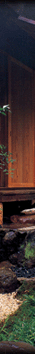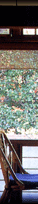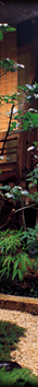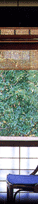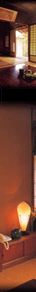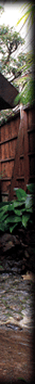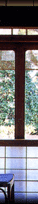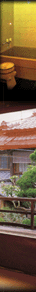 石畳の路地に溶け込む田舎亭のたたずまい。築地塀に囲まれたこの一角では、幾度も映画やコマーシャルのロケが行われています。玄関の格子戸を開けると、最初に目にはいるのが沓脱石の上に置かれた男物と女物の塗りの下駄。一階の部屋からは、緑鮮やかな苔むす坪庭(前庭)。つくばいには一輪の花がそっと色を添えます。二階の窓は懐かしの曹達硝子。窓越しに見る景色は少しだけ歪んで見え、古い和風建築ならではのぬくもりを感じていただけます。 |